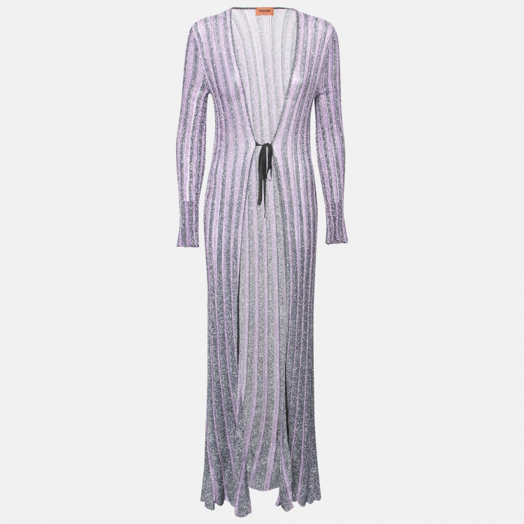 Missoni Metallic Purple Lurex Knit Open Front Belted Long Cardigan S