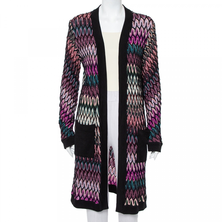 Missoni Multicolor Knit Patch Pocket Detail Open Front Cardigan XL