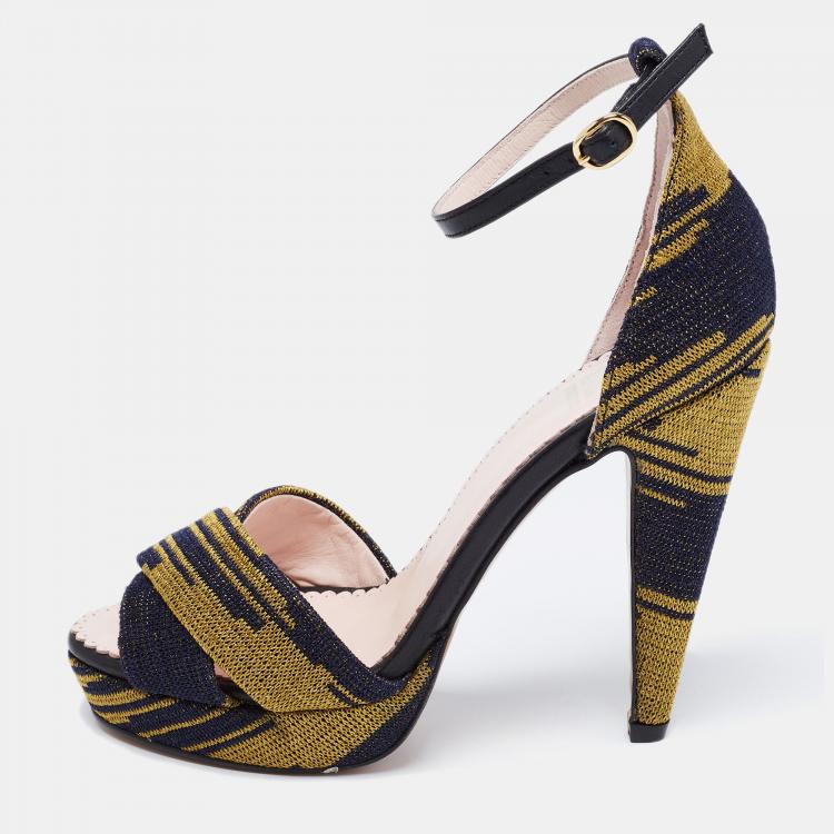 Missoni Two Tone Knit Fabric And Leather Trim Ankle Strap Platform Sandals Size 38