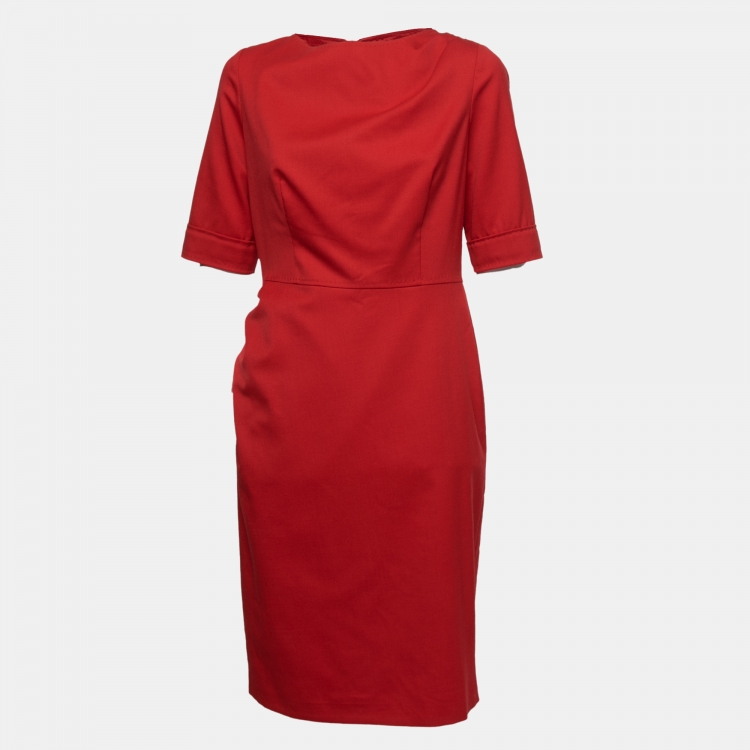 Pre Owned Moschino Cheap and Chic Red Wool Midi Dress M