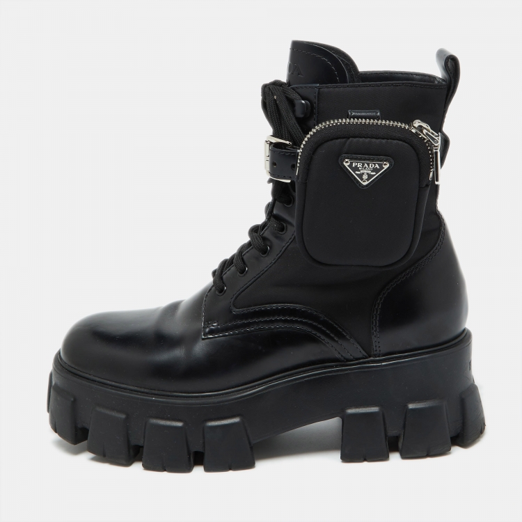Prada Black Leather and Nylon Monolith Ankle Boots Size 38.5