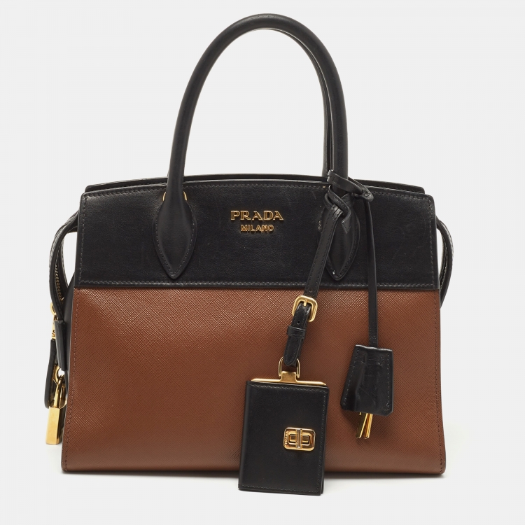 Prada Black/Brown Saffiano and City Calf Leather Small Esplanade Bag