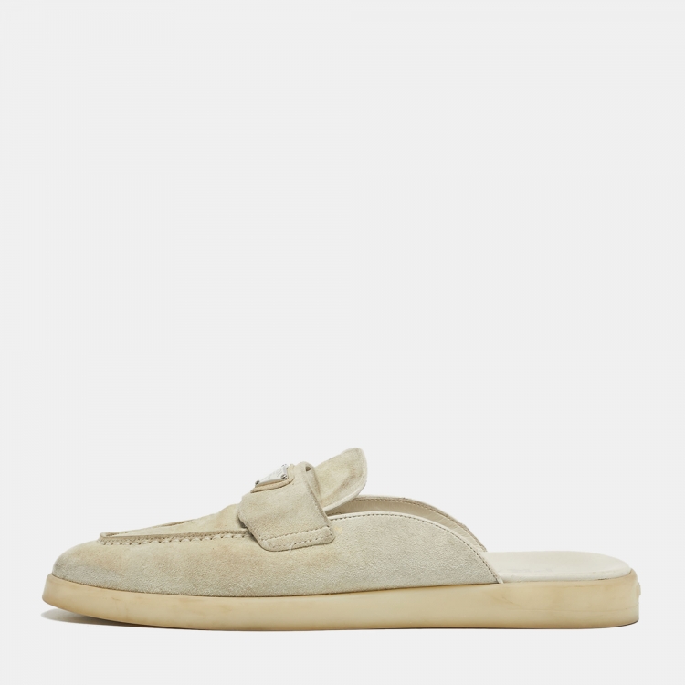 Prada Grey Suede Sabot Mules Size 40.5