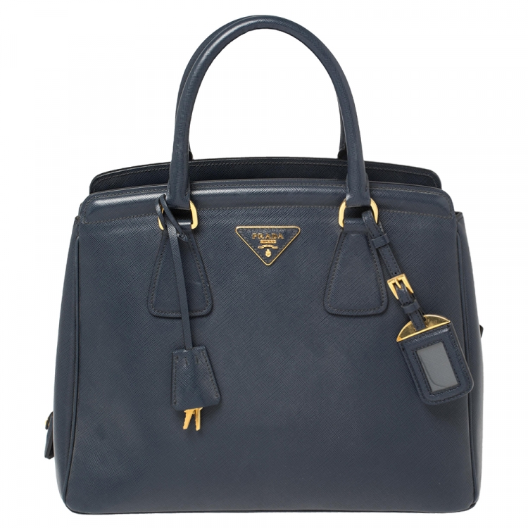 Prada Navy Blue Saffiano Lux Leather Parabole Tote