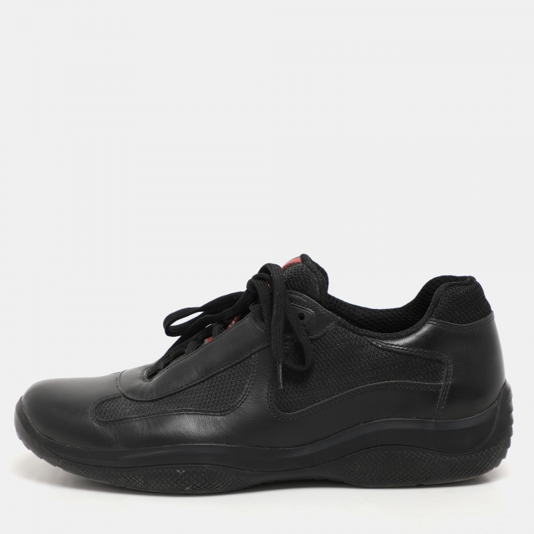 Pre Owned Prada Sport Black Leather and Mesh Low Top Sneakers Size 39