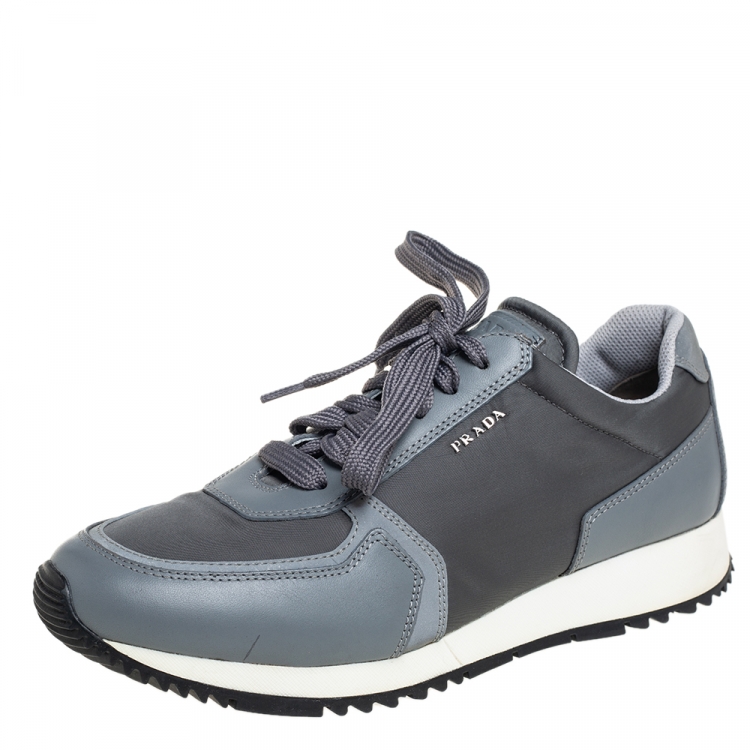 Prada Sport Grey Nylon And Leather Low Top Sneakers Size 39.5
