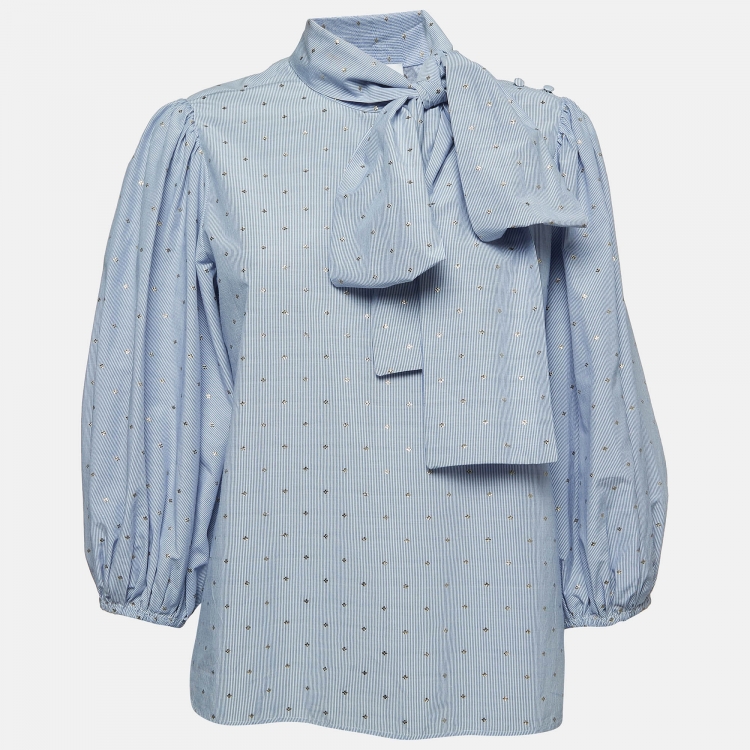 Pre Owned RED Valentino Blue Microstriped Flower Patterned Poplin Top M