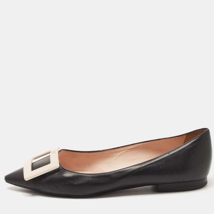 Roger Vivier Black Leather Gommette Ballet Flats Size 37