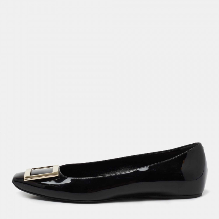 Pre Owned Roger Vivier Black Patent Leather Trompette Ballet Flats Size 36.5