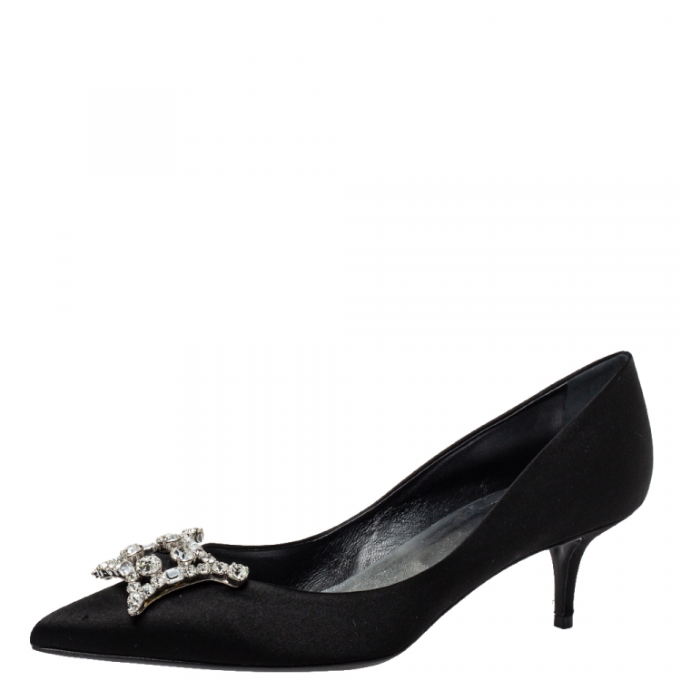 Roger Vivier Black Satin Crystal Embellished Pointed Toe Pumps Size 39.5