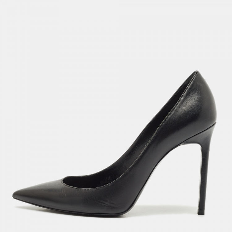 Saint Laurent Black Leather Anja Pointed Toe Pumps Size 39.5