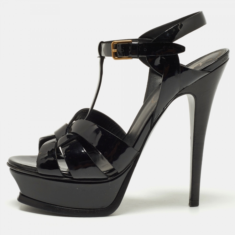 Pre Owned Saint Laurent Black Patent Leather Tribute Ankle Strap Sandals Size 36