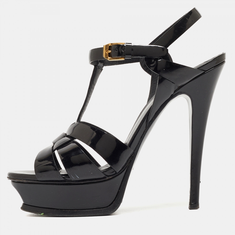 Pre Owned Saint Laurent Black Patent Leather Tribute Sandals Size 37