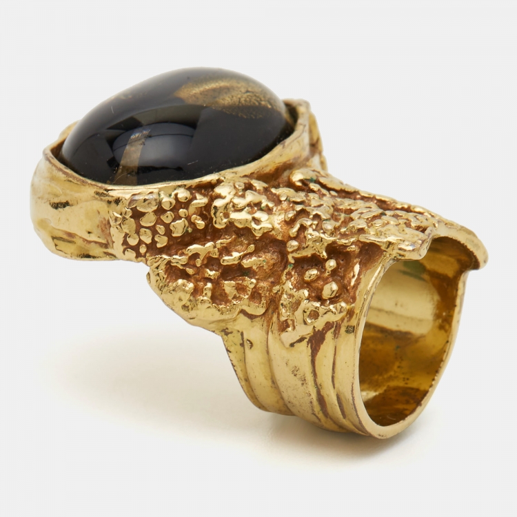 Saint Laurent Paris Arty Glass Cabochon Gold Tone Ring Size 50