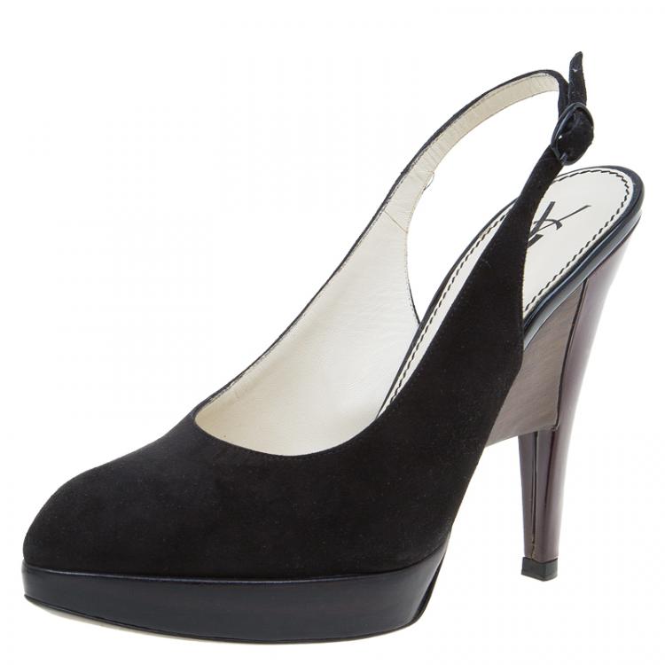 Pre Owned Saint Laurent Paris Black Suede Slingback Wedge Sandals Size 36.5