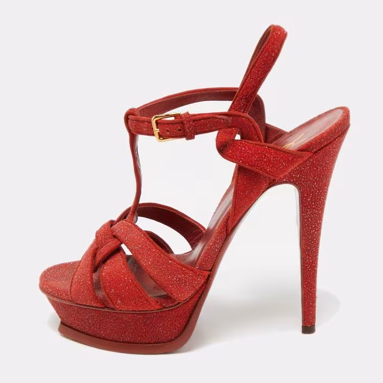 Saint Laurent Red Suede and Quartz Tribute Platform Sandals Size 38