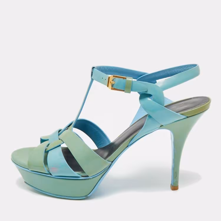 Saint Laurent Two Tone Patent Leather Platform Sandals Size 40