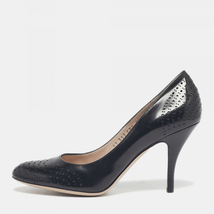 Salvatore Ferragamo Black Perforated Leather Round Toe Pumps Size 38.5