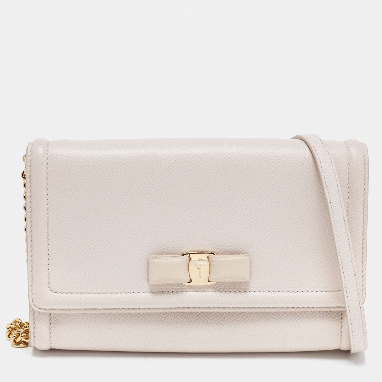 Salvatore Ferragamo Light Pink Leather Vara Bow Wallet on Chain