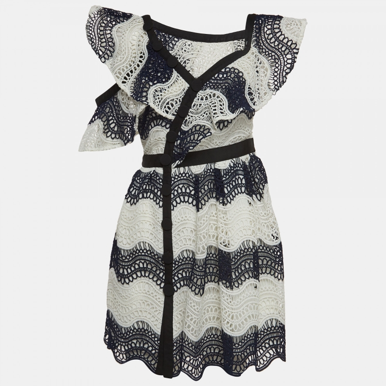 Self-Portrait Navy Blue/White Guipure Lace Short Dress M