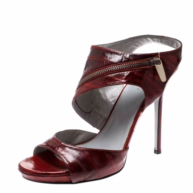 Sergio Rossi Red Eel Skin Peep Toe Ankle Strap Sandals Size 40