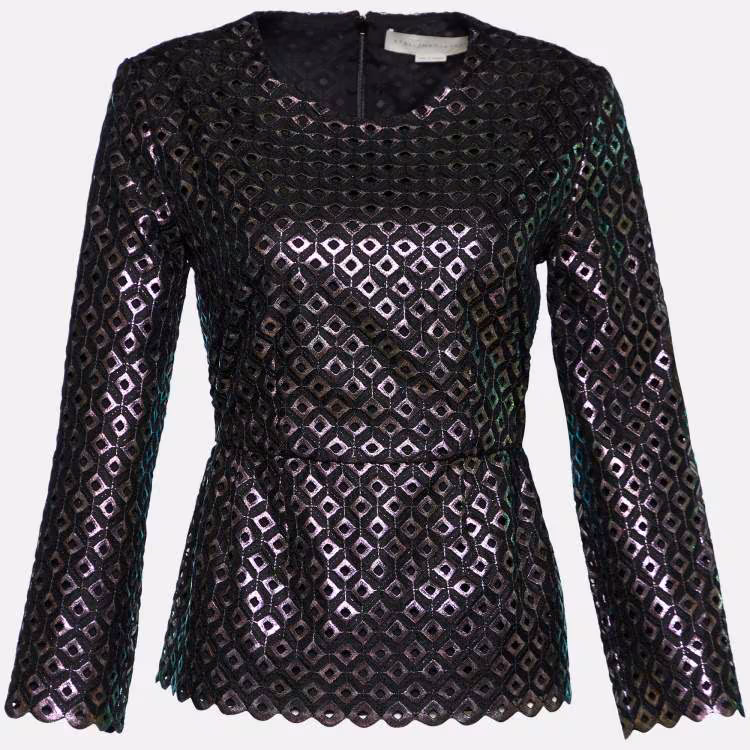 Stella McCartney Black Cutwork Peplum Top S