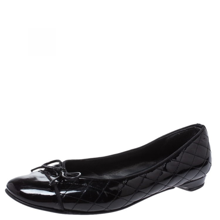Pre Owned Stuart Weitzman Black Quilted Patent Leather Bow Ballet Flats Size 39.5