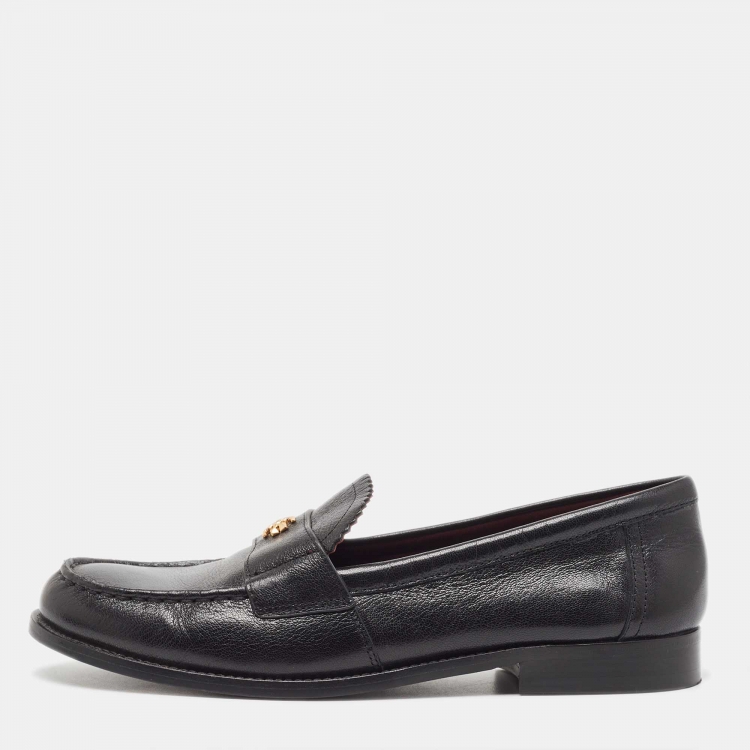 Pre Owned Tory Burch Black Leather Loafers Size 39