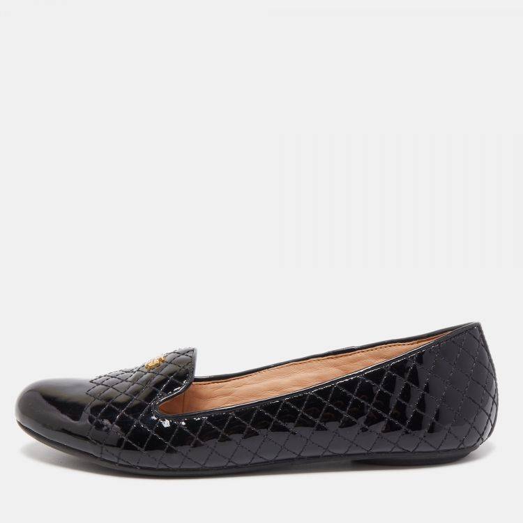 Pre Owned Tory Burch Black Quilted Patent Leather Smoking Slippers Size 37