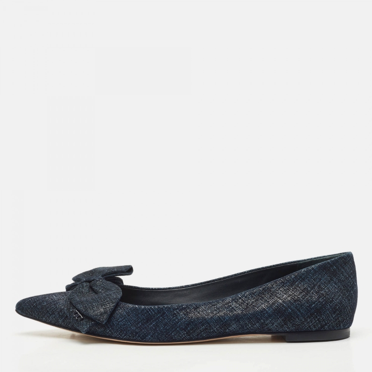Pre Owned Tory Burch Navy Blue Denim Rosalinda Ballet Flats Size 39