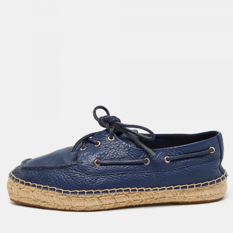 Tory Burch Navy Blue Leather Lace Up Espadrille Flats Size 41