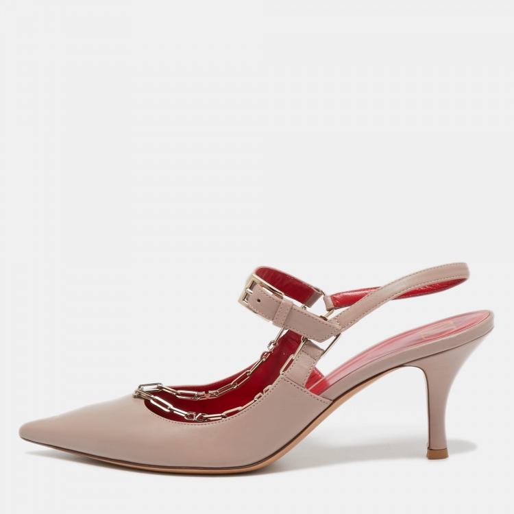 Valentino Dusty Pink Leather Chain Link Slingback Pumps Size 40