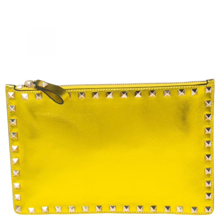 Valentino Metallic Green Glossy Leather Rockstud Clutch
