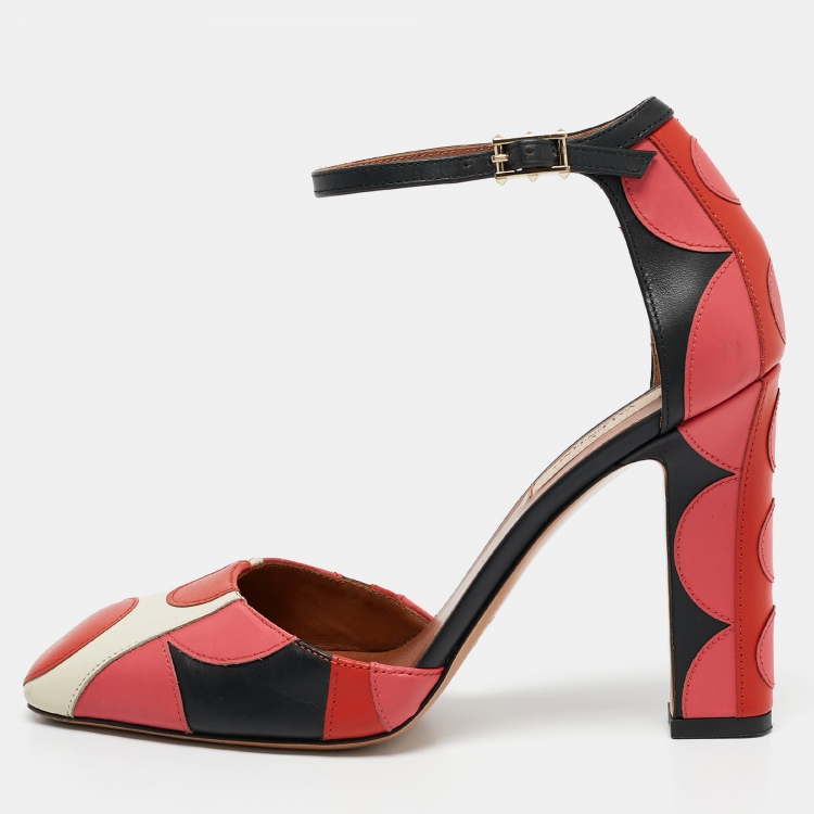 Valentino Multicolor Leather Carmen Square-Toe Ankle Strap Pumps Size 38