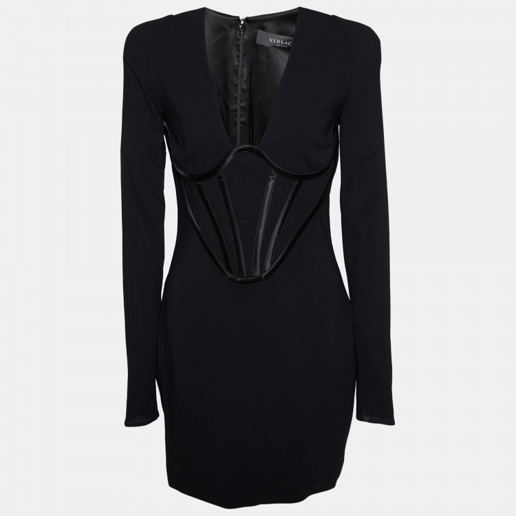 Pre Owned Versace Black Crepe Corset Mini Dress S