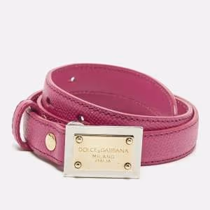 Dolce & Gabbana Logo Plaque 85 CM Slim Buckle Belt Fuchsia Leather