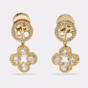 Carolina Herrera CH Crystals Faux Pearl Gold Tone Earrings