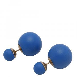 Dior Tribale Mise en Dior Matte Blue Gold Tone Stud Earrings