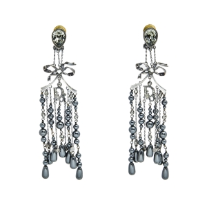 Dior Gunmetal Tone Beaded Chandelier Clip On Earrings
