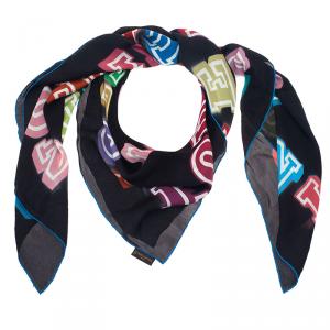Louis Vuitton Black Monogram Shine Wool and Silk Fringe Edged Shawl