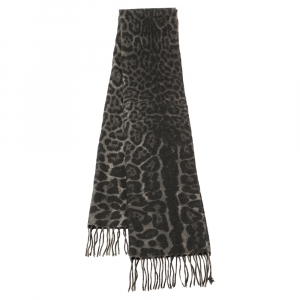 Yves Saint Laurent Grey Leopard Patterned Cashmere Wool Scarf