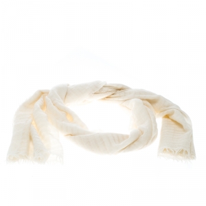 Chanel Off White Cashmere and Silk Shirred Fringed Edge Scarf