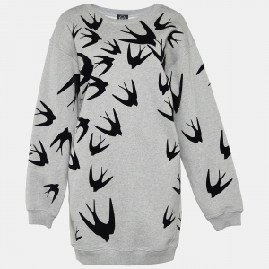 McQ by Alexander McQueen Grey Flocked Swallow Print Cotton Sweatshirt S