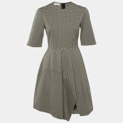 Stella McCartney Monocrome Houndstooth Pattern Wool Mid Length Coat M