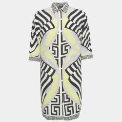 Versace Black/Yellow Barocco Print Silk Belted Shirt Dress S