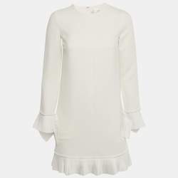Victoria Victoria Beckham White Crepe Plisse Mini Dress S