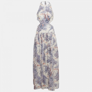 Zimmermann Light Beige Printed Linen & Silk Belted Maxi Dress S
