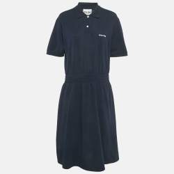Miu Miu Navy Blue Cotton Pique Cinched Waist Midi Dress M