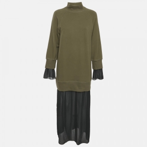 MM6 Maison Margiela Green/Black Cotton and Chiffon Midi Dress S