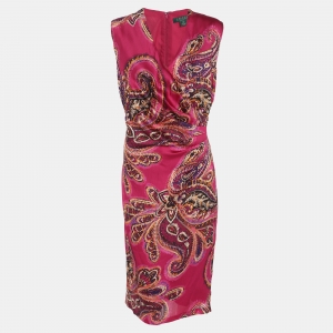 Ralph Lauren Purple Silk Belted Midi Dress M